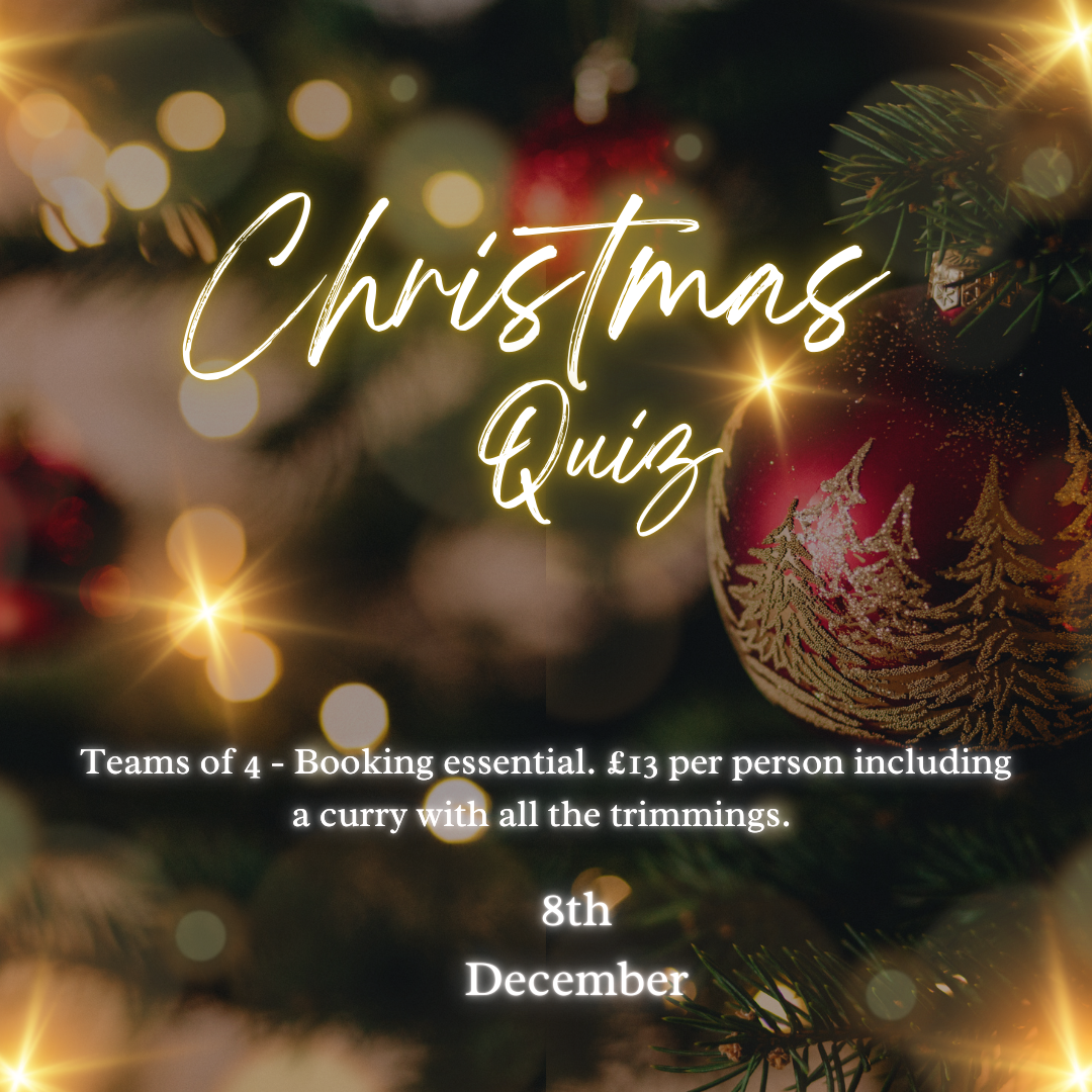 Join us for our ever popular pub quiz with an accompanying curry with all the trimmings. Just £13 per person including dinner. Teams of 4 Booking essential.