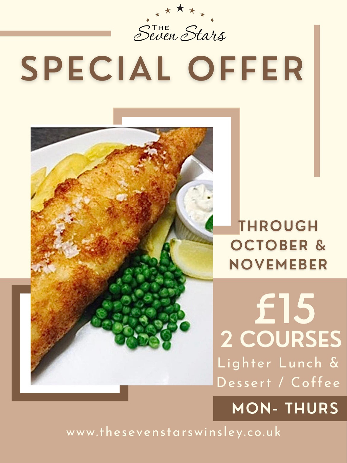 Mon - Thurs - Dine from our Lighter Lunch menu and add a desert / coffee for just £15 throughout November.